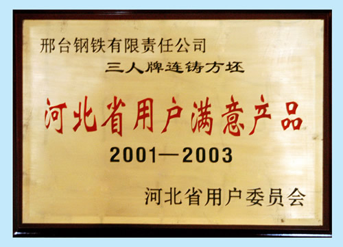 三人牌連鑄方坯被評為河北省用戶滿意產(chǎn)品