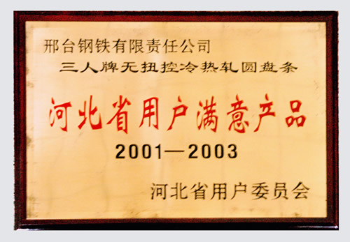 三人牌熱軋圓盤條被評為河北省用戶滿意產(chǎn)品
