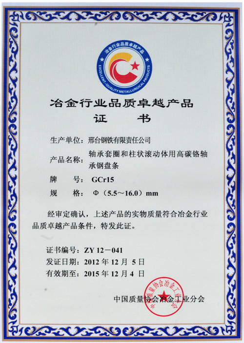 軸承鋼盤條GCr15φ5.5~16mm獲得冶金行業(yè)品質(zhì)卓越產(chǎn)品