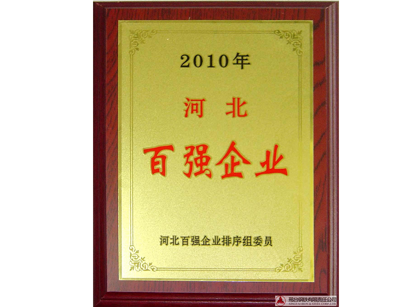 - 邢鋼榮獲2010年“河北省百?gòu)?qiáng)企業(yè)”榮譽(yù)稱號(hào)