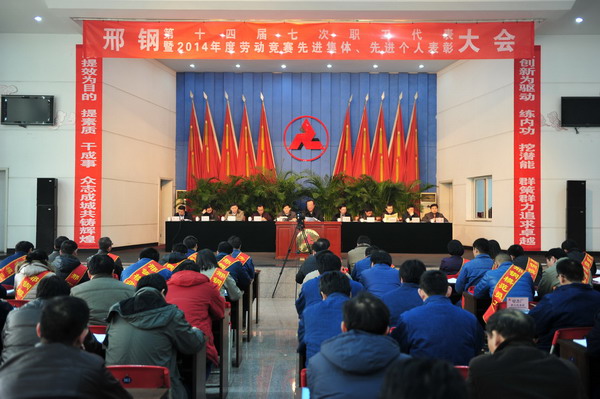 1月5日上午8時,在莊嚴的《國歌》聲中,公司第十四屆七次職工代表大會暨2014年度勞動競賽先進集體、先進個人表彰會在公司會議中心隆重召開。公司領導袁世臻、王春雨、苑希現、張永藏、劉蘭宗、王臣良、劉宏偉、侯月華、周兵晨、梁鋒、王郢出席了會議。邢臺市總工會副主席賈少國應邀到會并致詞。