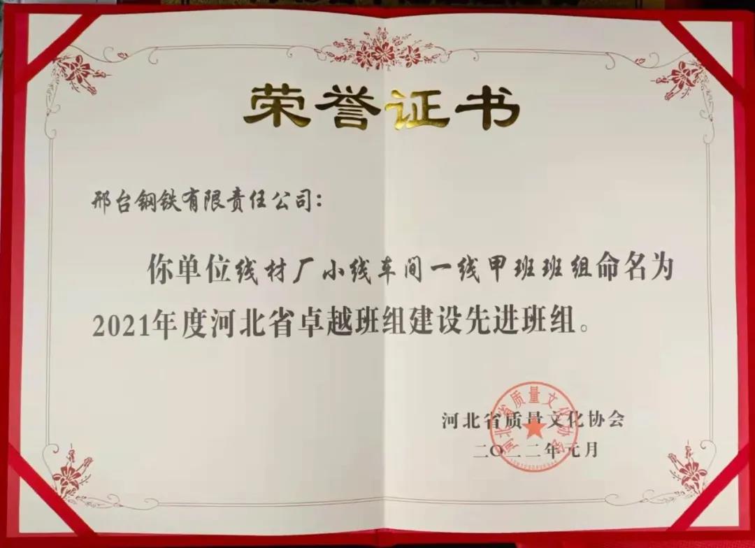 邢鋼兩個班組獲得省級榮譽表彰