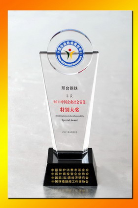 2011年6月17日,由中國外商投資企業(yè)協(xié)會(huì)、中國保護(hù)消費(fèi)者基金會(huì)、中國民(私)營經(jīng)濟(jì)研究會(huì)、中國環(huán)境新聞工作者協(xié)會(huì)和北京市石景山區(qū)人民政府聯(lián)合主辦的“第三屆企業(yè)社會(huì)責(zé)任年會(huì)”在北京舉行。本次年會(huì)主題為“企業(yè)的責(zé)任戰(zhàn)略與創(chuàng)新”。年會(huì)上隆重揭曉“2011(第三屆)中國企業(yè)社會(huì)責(zé)任榜單”。邢鋼公司經(jīng)過嚴(yán)格審核,入選“中國企業(yè)社會(huì)責(zé)任榜100強(qiáng)”,并獲“2011中國企業(yè)社會(huì)責(zé)任特別大獎(jiǎng)”,授予邢鋼董事長袁世臻 “中國履行社會(huì)責(zé)任優(yōu)秀企業(yè)家”稱號(hào)。