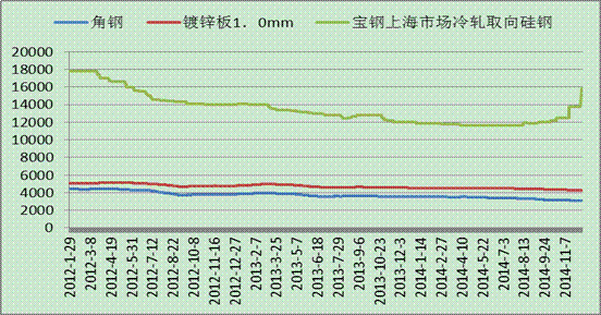 圖1:角鋼、鍍鋅板、硅鋼價(jià)格走勢