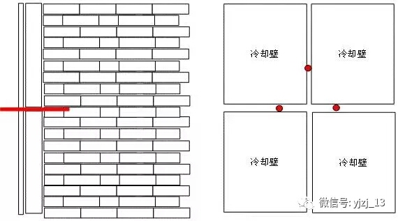 割除燒穿區(qū)域燒損的5塊冷卻壁,并清理燒穿部位的殘?jiān)t料,摳除部分燒損炭磚,露出砌筑接口。
