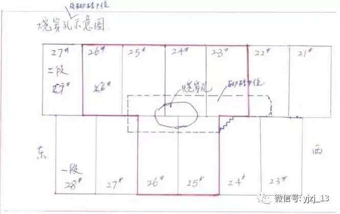 爐缸炭磚上、下層砌筑和門磚在圓周同一方向,導(dǎo)致上下層磚縫聯(lián)通,形成貫穿縫,很容易鐵水侵入。