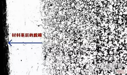 脫碳是一種常見的現(xiàn)象,鋼中的碳與空氣中的氧、二氧化碳和氫氣反應(yīng),產(chǎn)生一氧化碳或甲烷,導(dǎo)致表層金屬中的碳逃逸,這就減少了表層金屬中的碳含量。這里需要注意一點,只有當碳氧化的速度小于表層金屬氧化的速度,才會發(fā)生脫碳現(xiàn)象。