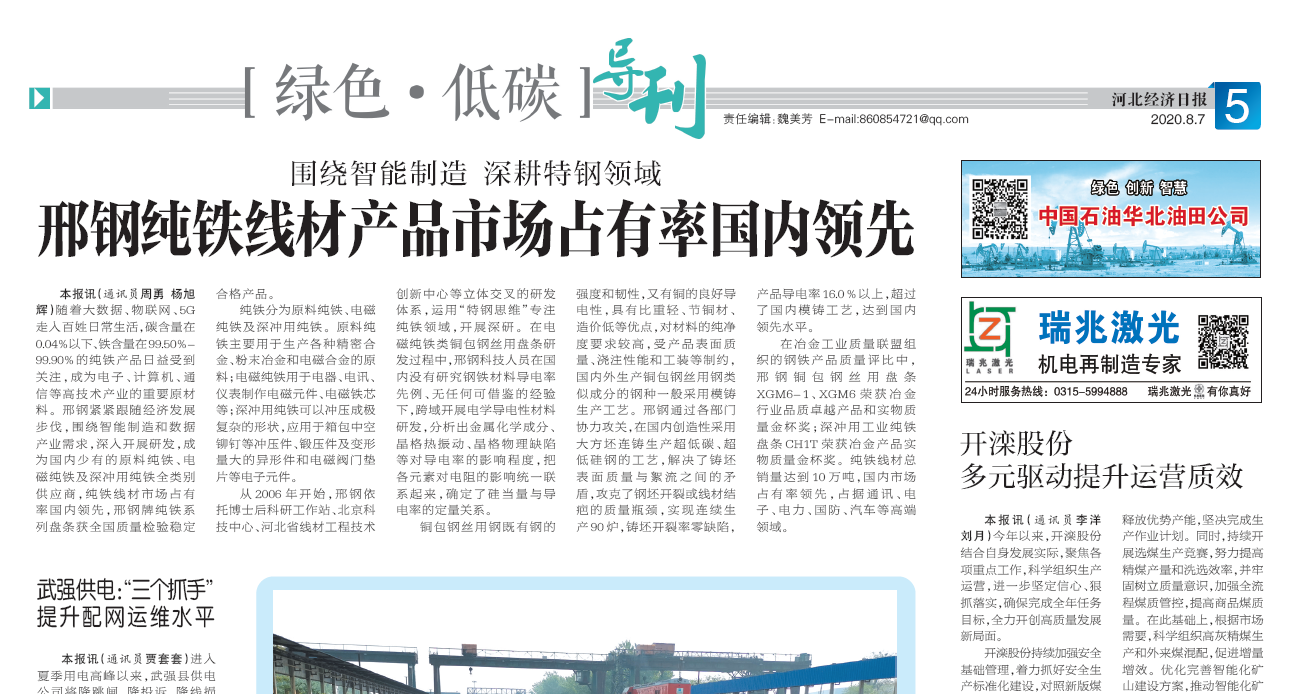 圍繞智能制造 深耕特鋼領(lǐng)域 邢鋼純鐵線材產(chǎn)品市場(chǎng)占有率國(guó)內(nèi)領(lǐng)先