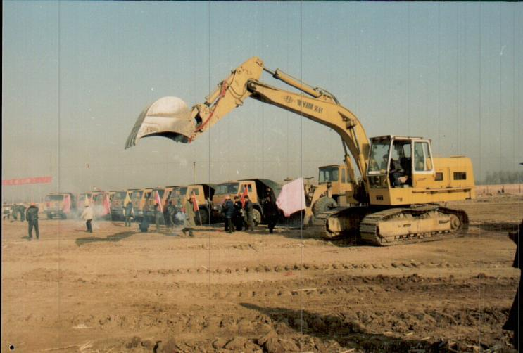 圖為1995年破土動工建設(shè)的場景,鞭炮的硝煙尚未消散,挖掘機(jī)抬起挖斗正要挖下第一鏟,運(yùn)輸車整裝待發(fā),“煉鋼”來了!
