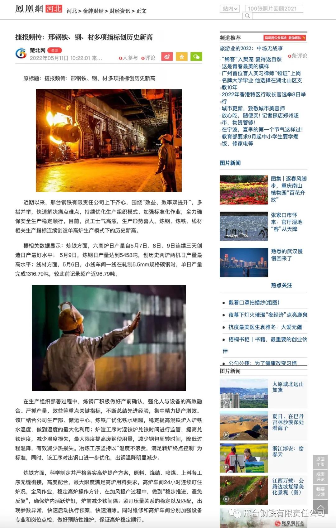 近期以來,邢臺(tái)鋼鐵有限責(zé)任公司上下齊心,圍繞“效益、效率雙提升”,多措并舉,快速解決痛點(diǎn)難點(diǎn),持續(xù)優(yōu)化生產(chǎn)組織模式、加強(qiáng)標(biāo)準(zhǔn)化作業(yè),全力確保安全生產(chǎn)穩(wěn)定順行。目前,員工士氣高漲,生產(chǎn)形勢(shì)喜人,煉鋼、煉鐵、線材相關(guān)生產(chǎn)指標(biāo)連續(xù)創(chuàng)造單高爐生產(chǎn)模式下的歷史新高。