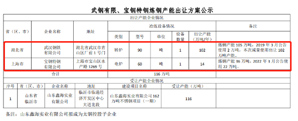 按照《國務(wù)院關(guān)于化解產(chǎn)能嚴(yán)重過剩矛盾的指導(dǎo)意見》、《國務(wù)院關(guān)于鋼鐵行業(yè)化解過剩產(chǎn)能實(shí)現(xiàn)脫困發(fā)展的意見》和《鋼鐵行業(yè)產(chǎn)能置換實(shí)施辦法》要求,經(jīng)國務(wù)院國資委復(fù)函同意,擬將武鋼有限轉(zhuǎn)爐產(chǎn)能以及寶鋼特鋼電爐產(chǎn)能出讓?,F(xiàn)將武鋼有限1座90噸轉(zhuǎn)爐102萬噸煉鋼產(chǎn)能、寶鋼特鋼1座60噸電爐14萬噸煉鋼產(chǎn)能出讓方案予以公示,公示期為2022年5月25日-6月22日,歡迎社會(huì)公眾進(jìn)行監(jiān)督。