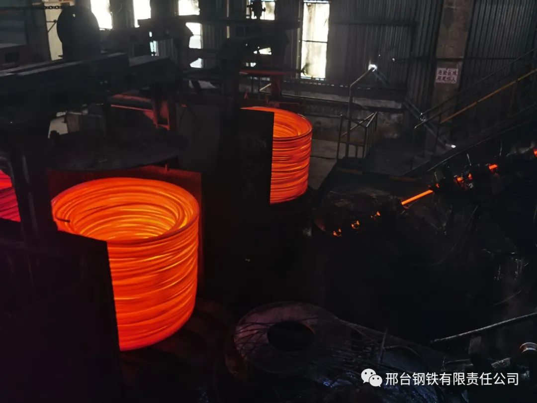 1月25日6時28分,隨著三線車間主控臺下達(dá)“出鋼”指令,加熱爐爐門緩緩開啟,火紅的鋼坯順勢咬入軋機(jī),氣勢如虹地穿越過粗、中、精軋機(jī)組,滿載邢鋼人濃濃期待的盤條,頃刻間從吐絲機(jī)上旋落,短短不到兩分鐘,整個過程行云流水、一氣呵成。至此,邢鋼復(fù)產(chǎn)后首卷高端線材正式軋制完畢,元氣滿滿、砥礪奮進(jìn)中的邢鋼已步入生產(chǎn)運營新階段。