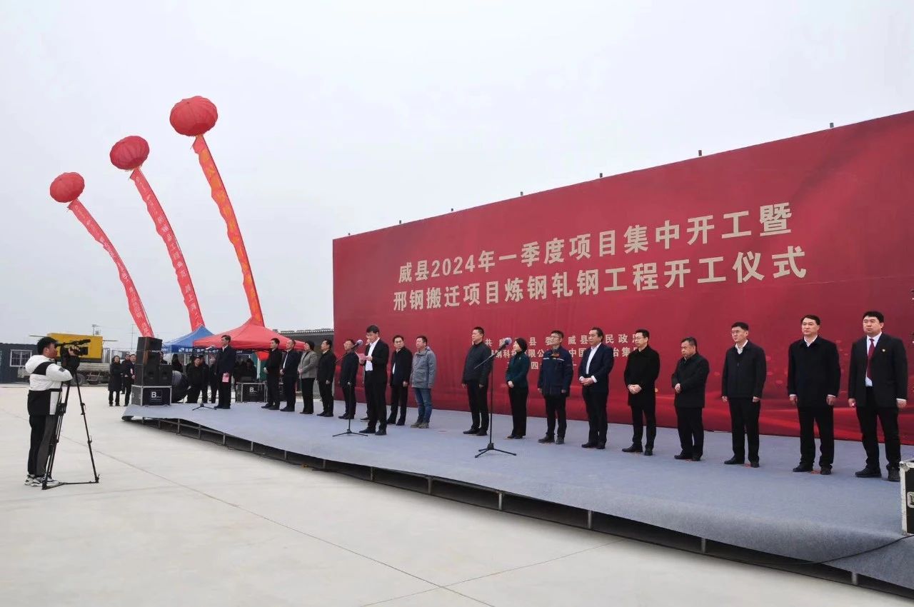 On February 18th, the groundbreaking ceremony for the Steelmaking and Rolling Engineering of Xingtai Steel's transformation, upgrading, and relocation renovation project was held. This event represents another milestone in the main construction project following the commencement of the Plant Front Area Project on January 16th. The Secretary of the Wei County Party Committee, Cui Yaopeng, the Chairman of Xingtai Iron and Steel Co., Ltd., Zhang Yuming, and the Deputy General Manager of China 20th Metallurgical Construction Co., Ltd., Zhang Shiyan, attended the ceremony and delivered speeches respectively. The groundbreaking ceremony was conducted in conjunction with Wei County's first-quarter project kickoff for 2024, which involved a total of 28 projects with a combined investment of 9.72 billion yuan.