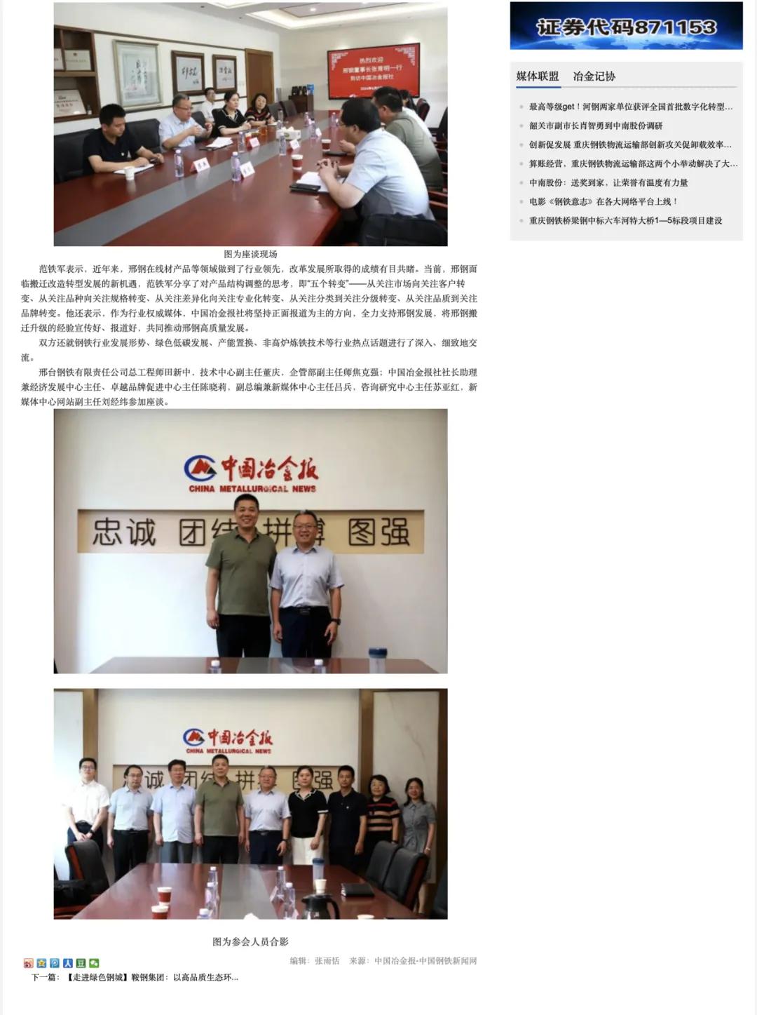 雙方還就鋼鐵行業(yè)發(fā)展形勢、綠色低碳發(fā)展、產(chǎn)能置換、非高爐煉鐵技術等行業(yè)熱點話題進行了深入、細致地交流。