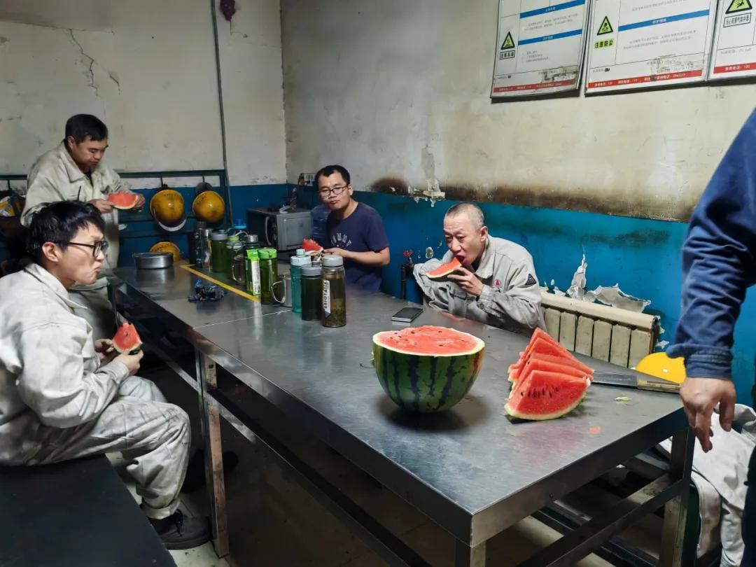 “天氣炎熱,大家辛苦了”,在爐前,侯副總親自把西瓜送到員工手里,并送上節(jié)日的祝福“端午安康!”希望大家在工作中注意做好防暑降溫,避免中暑,工作中合理分配體力,既要保證西場主溝澆筑過程安全,又要保證東場單場出鐵過程安全。在二燒混合機檢修現(xiàn)場,侯總了解檢修進度,叮囑維修、燒結(jié)車間主任,要注意檢修過程人員安全,保證檢修質(zhì)量,為二燒設(shè)備穩(wěn)定運行奠定基礎(chǔ)。