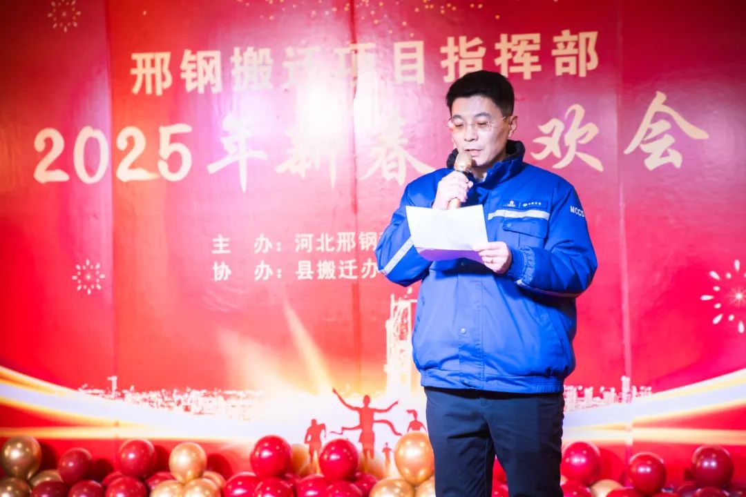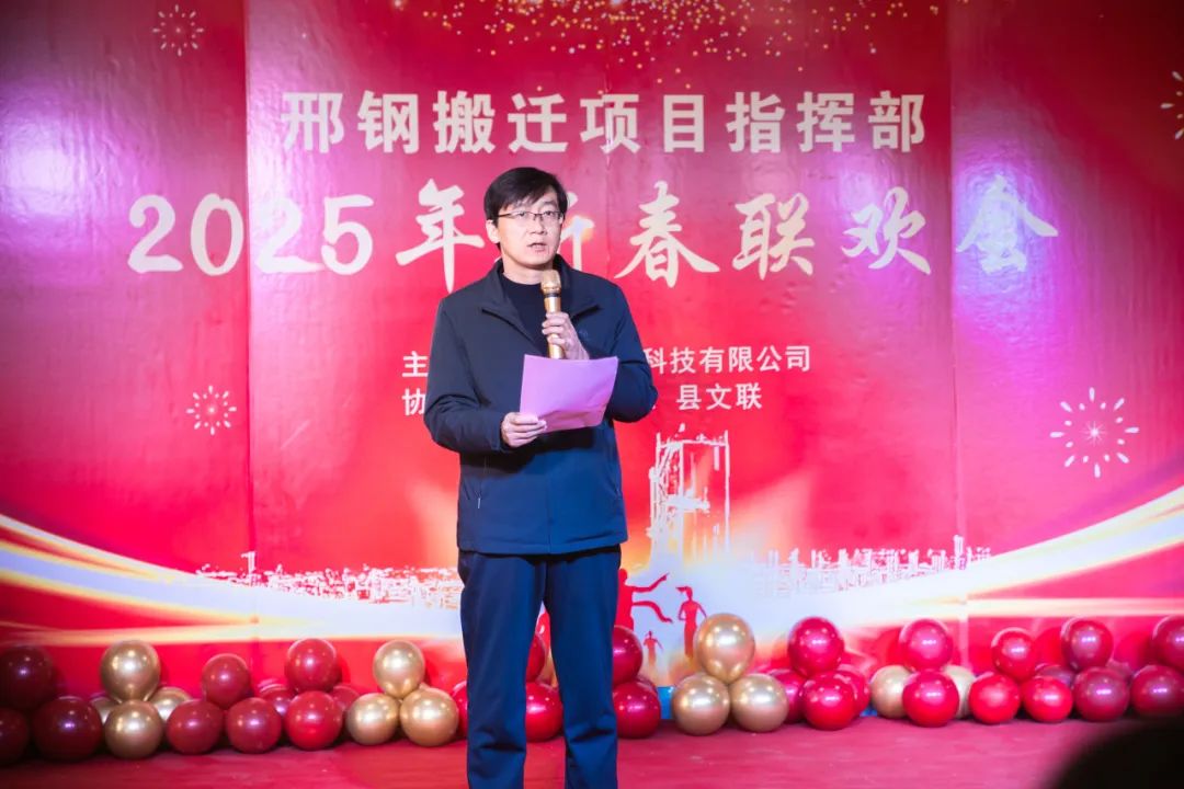 在熱烈、融洽的氣氛中,聯(lián)歡會拉開帷幕。威縣縣委常委、宣傳部長、搬遷專班班長白鋒發(fā)表致辭。他代表威縣縣委、縣政府,向所有關(guān)心支持邢鋼搬遷改造項目的各級領(lǐng)導(dǎo)和參與建設(shè)的同志們表達了崇高的敬意和衷心的感謝。并高度評價了邢鋼人在過去一年中展現(xiàn)出的團結(jié)協(xié)作、頑強拼搏的精神,表示威縣政府將繼續(xù)全力支持邢鋼搬遷項目,推動項目早日建成投產(chǎn),為威縣經(jīng)濟發(fā)展做出更大貢獻。