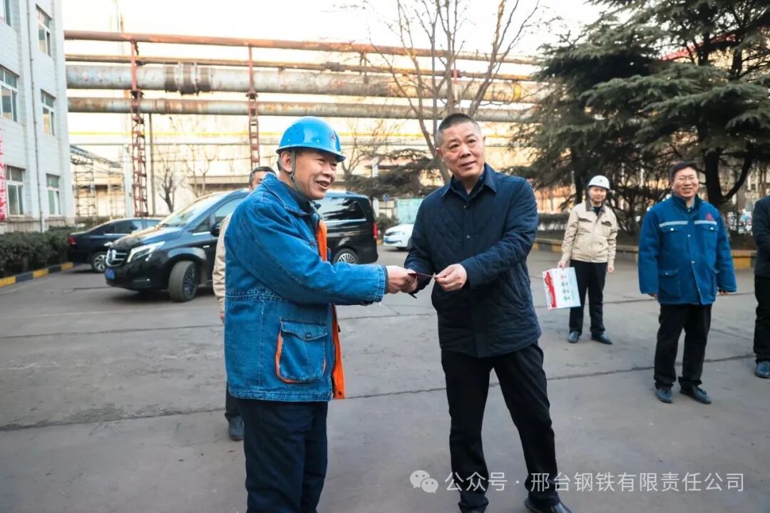 慰問中,張育明董事長對大家在過去一年里為邢鋼老廠區(qū)穩(wěn)定和新廠區(qū)建設(shè)付出的艱辛努力表示衷心感謝。他表示,鋼鐵是工業(yè)的脊梁,一線是企業(yè)的根基。在萬家團圓的時刻,大家用堅守詮釋責任,用奉獻點亮新春,生動展現(xiàn)了邢鋼人“鐵一般擔當”的精神風(fēng)貌。
